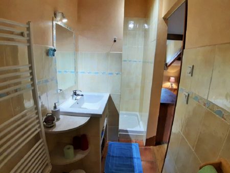 Les serviettes et gants de toilette sont à disposition sous le lavabo ainsi qu’un sèche cheveux.
